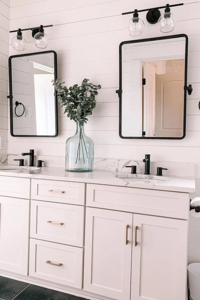 Full-width mirrors stretch across the vanity and make the bathroom feel larger. They reflect more light and reduce dark corners.