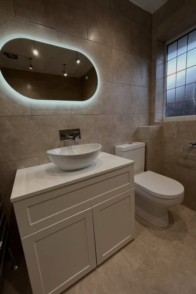 Backlit mirrors are a favorite in modern bathrooms because they look clean and feel purposeful. The light comes from behind the mirror, creating a floating effect on the wall. This design removes the need for heavy frames and extra fixtures. It works especially well in small bathrooms where visual clutter can make the space feel tight.