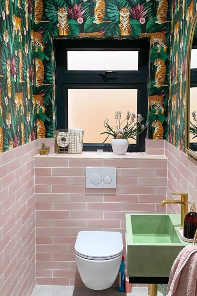 This works especially well in shared bathrooms. It balances design with durability and makes wallpaper a safe choice even in busy homes.