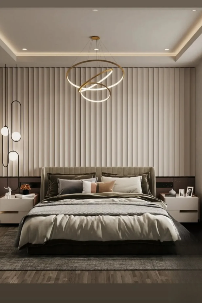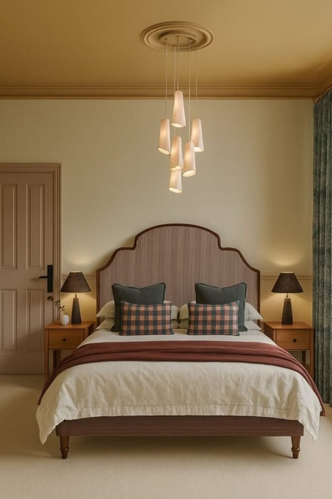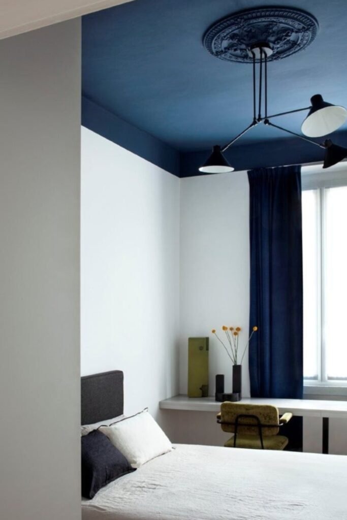 A statement ceiling goes beyond simple moulding or layers. It can involve bold colors, patterns, or even textured plaster. Statement ceilings draw focus upward and turn the ceiling into a design feature rather than a background. For bedrooms, a statement ceiling works best with minimal wall decor, so it doesn’t compete with other elements. This approach is perfect for homeowners who want the bedroom to feel unique and memorable.