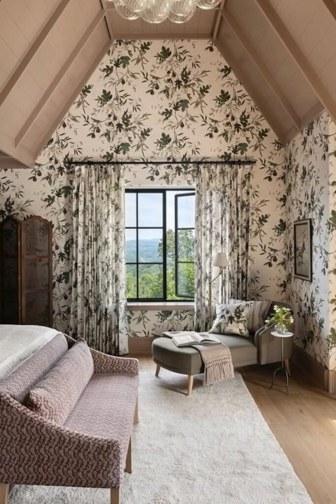 Sloped ceilings can be tricky, but patterned designs make them a feature. Geometric patterns, painted stripes, or subtle textures guide the eye and add interest. Patterned sloped ceilings are ideal in attic bedrooms or rooms with roof angles. They balance the unusual shape and turn potential awkwardness into a design advantage. Using soft colors keeps the room feeling cozy rather than closed in.