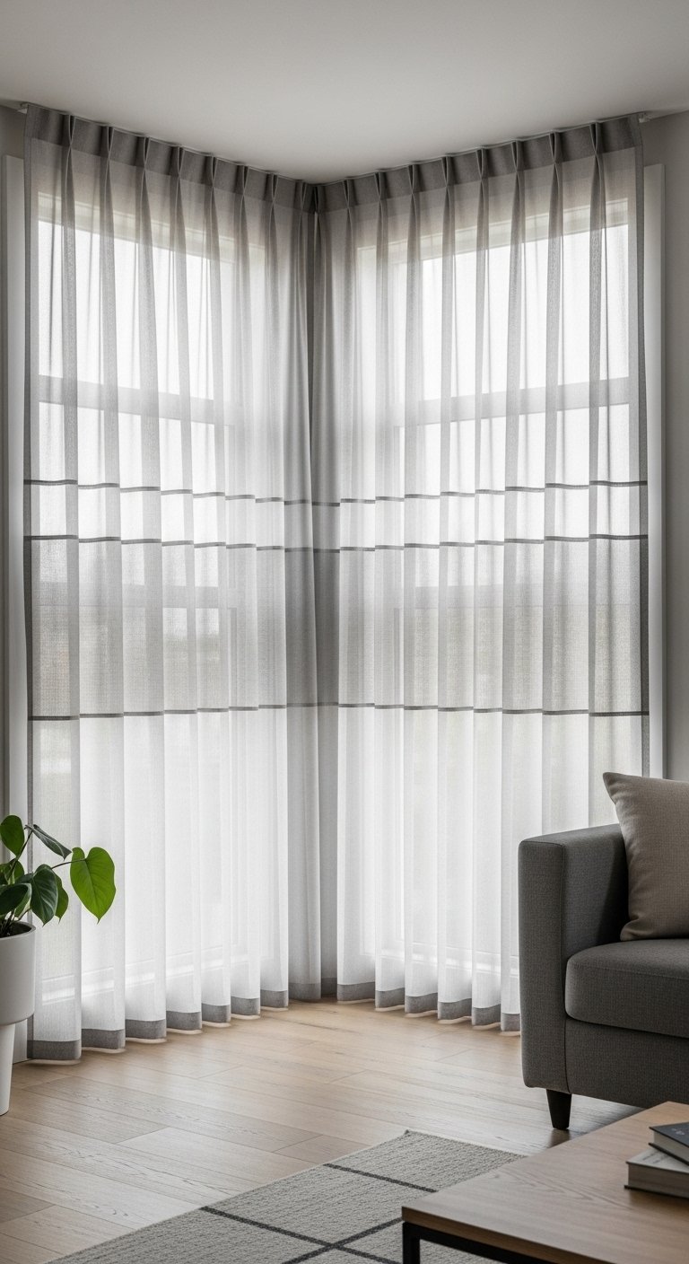 10. Layered Sheer Curtains for Corner Windows