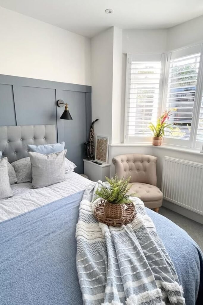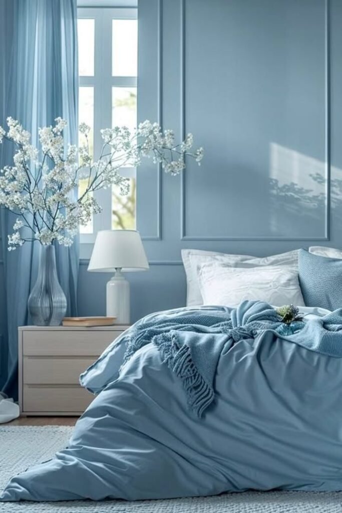 Powder blue adds softness without feeling sweet. It works well in bedrooms that need light.