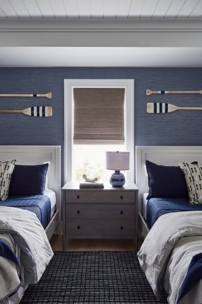 Nautical blue works well in shared or twin bedrooms. It feels clean and familiar. Using blue with white and soft wood creates a look that feels organized and calm.