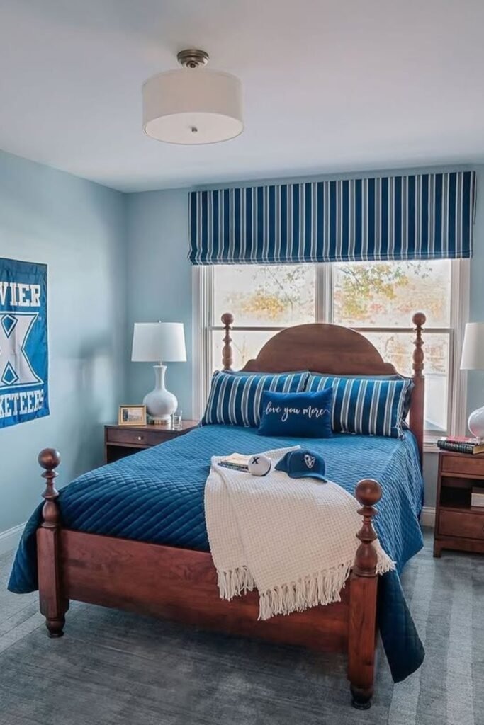 Sporty blue bedrooms focus on comfort and ease. This look often uses darker blues with simple lines. It feels relaxed and practical.