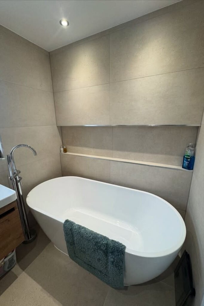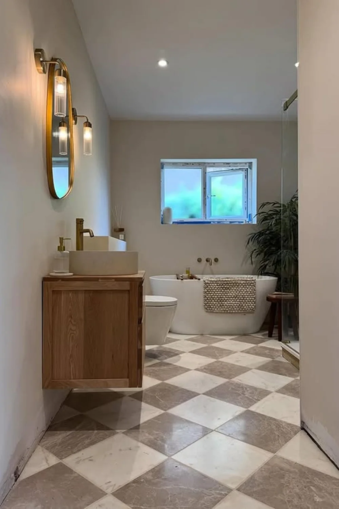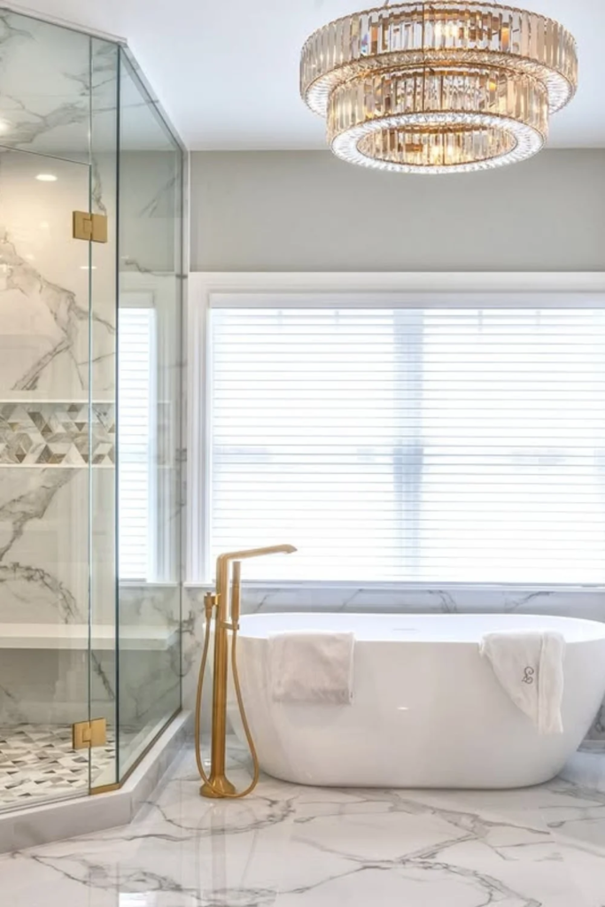 Depth is not just about size. It is about how the room is experienced. Placing a freestanding tub further into the room, rather than against a wall, creates layers. This layout adds interest and improves movement. It also allows light to wrap around the tub, making the space feel open and balanced.