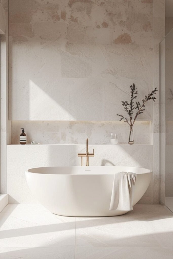 A freestanding tub can be framed by architecture rather than furniture. Recessed walls, ceiling features, or floor changes can highlight the tub without adding clutter. This makes the tub feel intentional, not added later. It also helps guide the eye and improve room balance.