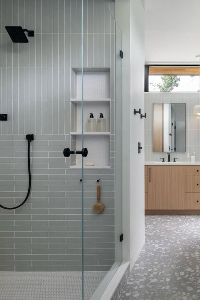 Terrazzo adds quiet fun without loud colors. Its small flecks feel playful but still clean and modern. In kids bathrooms, terrazzo works well on floors or vanity tops because it hides water spots and wear. This material also grows well with kids, making it a smart long-term choice for families planning to stay in their home.