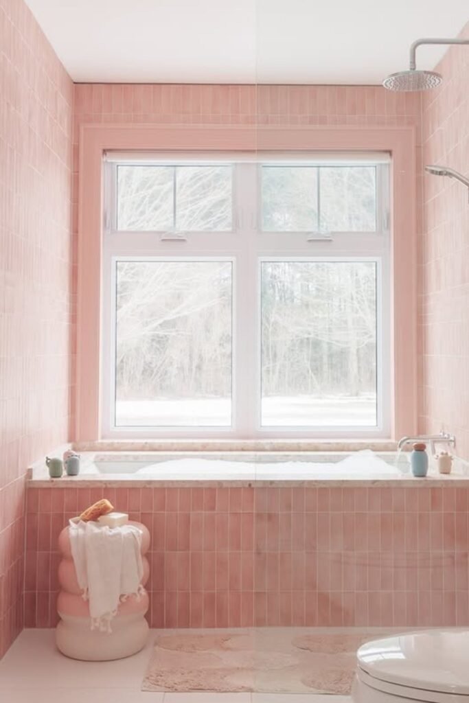 A soft pink bathroom does not have to feel themed. In 2026, pink is used in muted shades that feel warm and calm. When paired with neutral floors and simple fixtures, pink creates a welcoming space that feels safe and comforting.