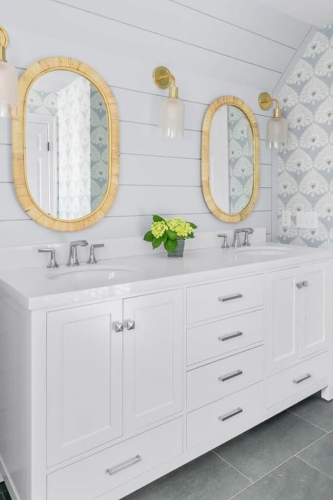 What color vanity works best with patterned wallpaper?