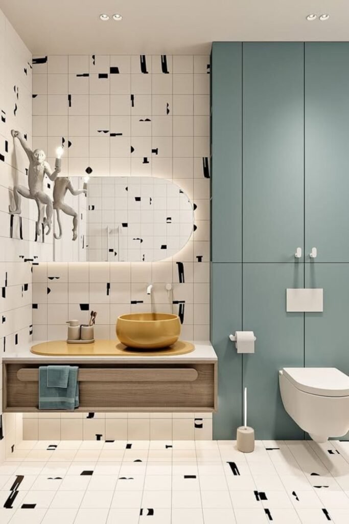 Mint adds freshness without brightness. In kids bathrooms, mint feels clean and gentle. It pairs well with white and wood, helping the room feel open and easy to maintain.