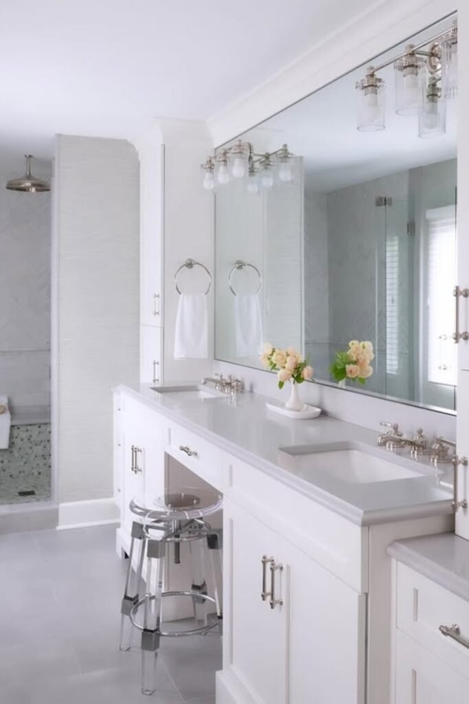 All-White Vanity with Layered Lighting