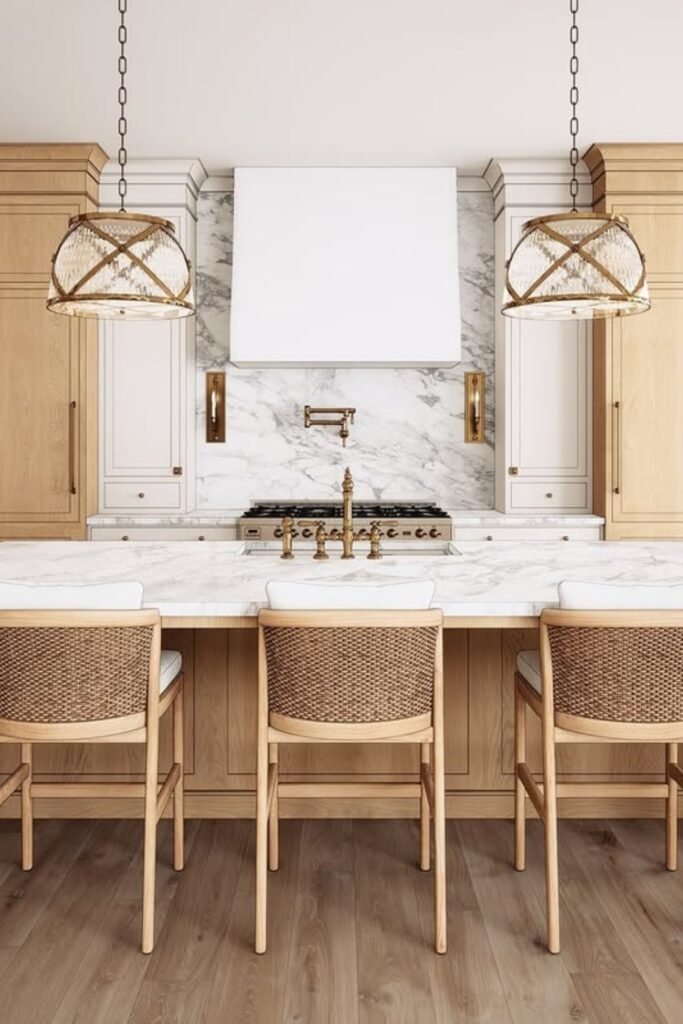 Blonde wood cabinets are popular because they feel honest and simple. Instead of heavy stains, homeowners are choosing lighter wood tones that show grain and texture. These cabinets make kitchens feel open and warm at the same time. They work well in homes that want a natural look without feeling rustic.