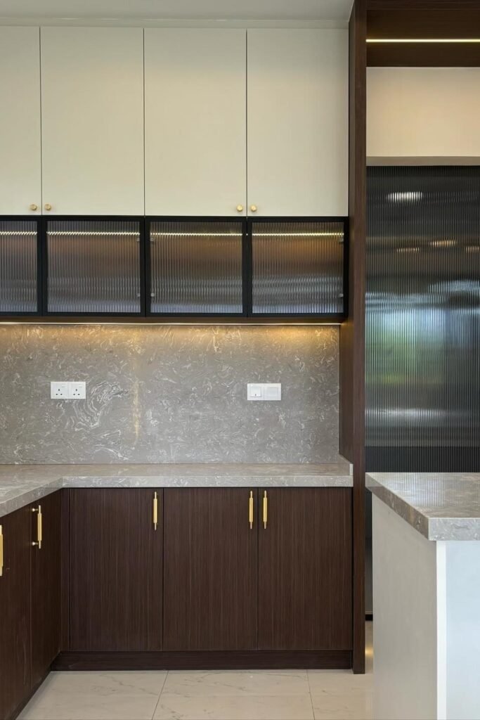 The key to dual contrast is keeping both colors calm. Loud shades can clash, but soft tones work together. From experience, this style helps kitchens age better because it avoids overuse of one strong color. It also allows easy updates later by changing one section instead of the whole kitchen.