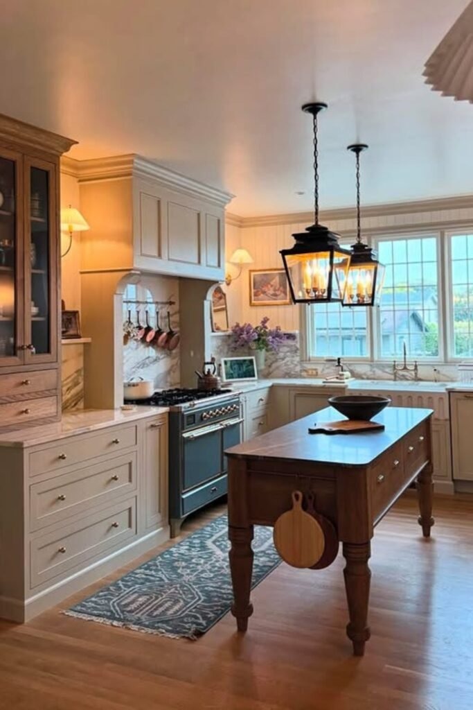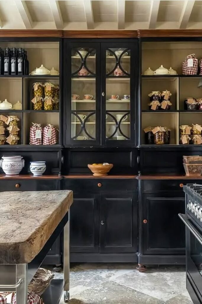 A vintage charm kitchen feels collected over time. It uses older cabinet styles, simple knobs, and classic layouts. Nothing feels rushed or trendy. This style often includes painted wood, glass-front cabinets, and soft lighting.