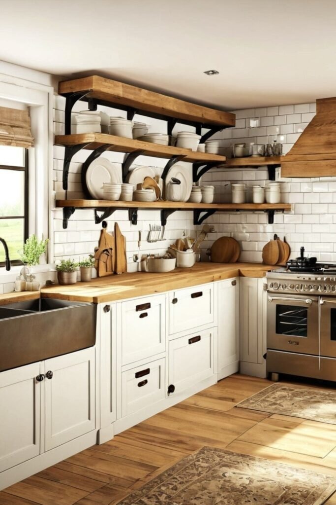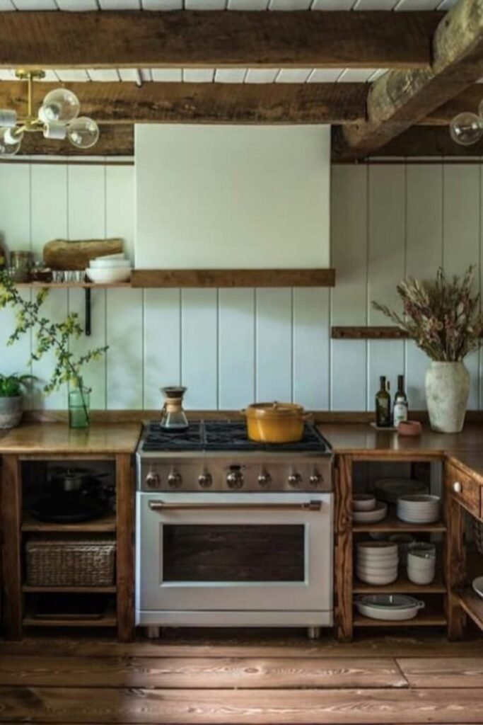 This style avoids sharp edges and cold finishes. Everything feels touchable and friendly. It is a kitchen made for cooking, talking, and staying awhile.