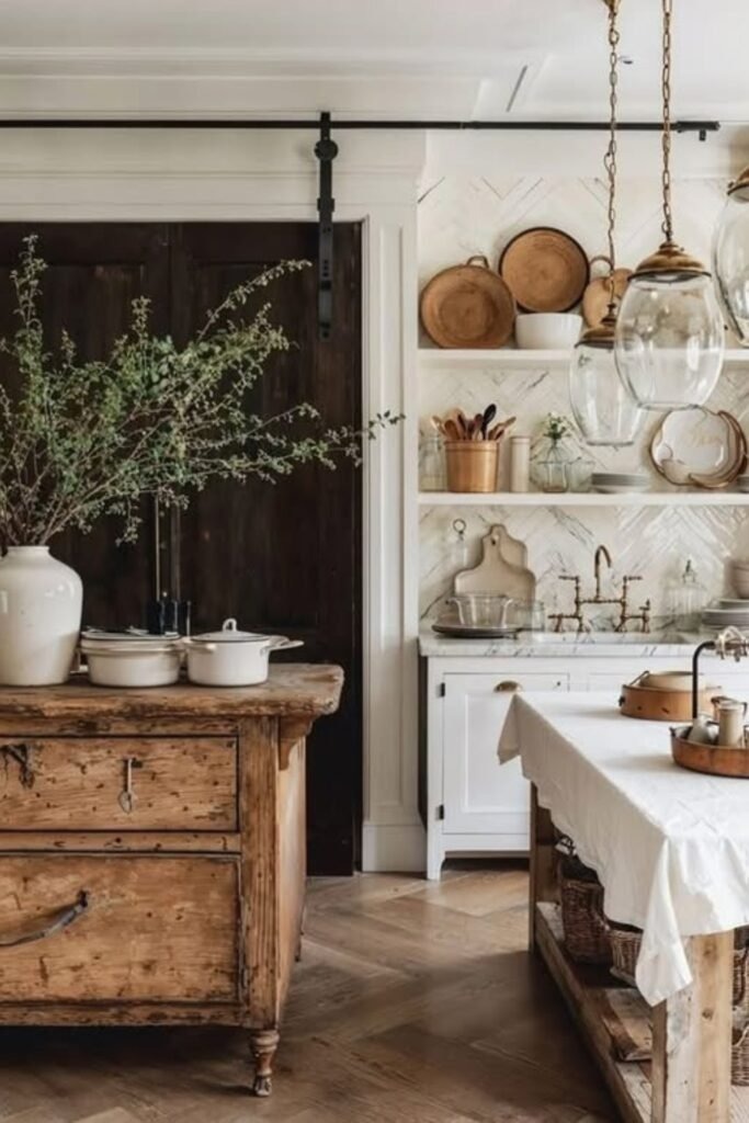The key is restraint. Too many old pieces can feel cluttered. Choose a few strong vintage elements and let them lead. The kitchen should feel gentle and familiar, like it has always been there.