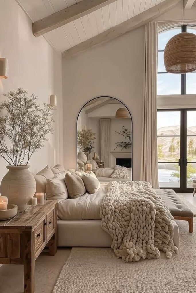 Warm architectural calm highlights the structure of the room. Exposed beams, window frames, or simple ceiling details add character. These features are kept soft and natural so they do not overpower the space. In 2026, more people are embracing these elements instead of hiding them.