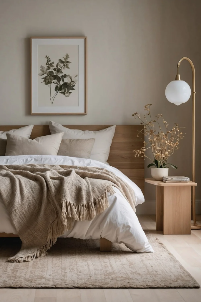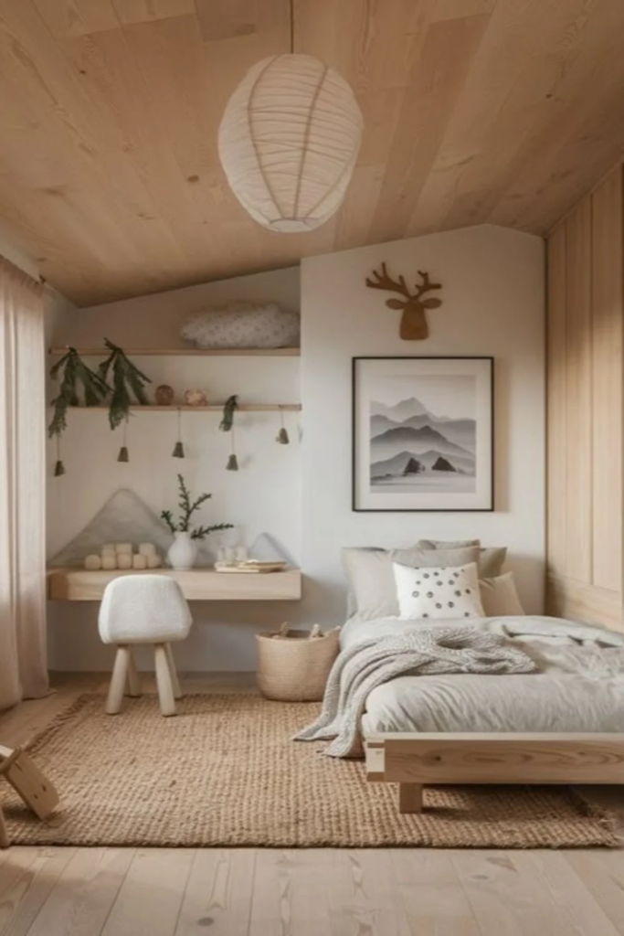 Grounded natural calm is created through natural materials and earth-based tones. Light wood, soft stone colors, and simple fabrics help the bedroom feel stable and peaceful. This grounding effect supports rest and emotional comfort, which is why Scandinavian bedrooms often feel so easy to be in.