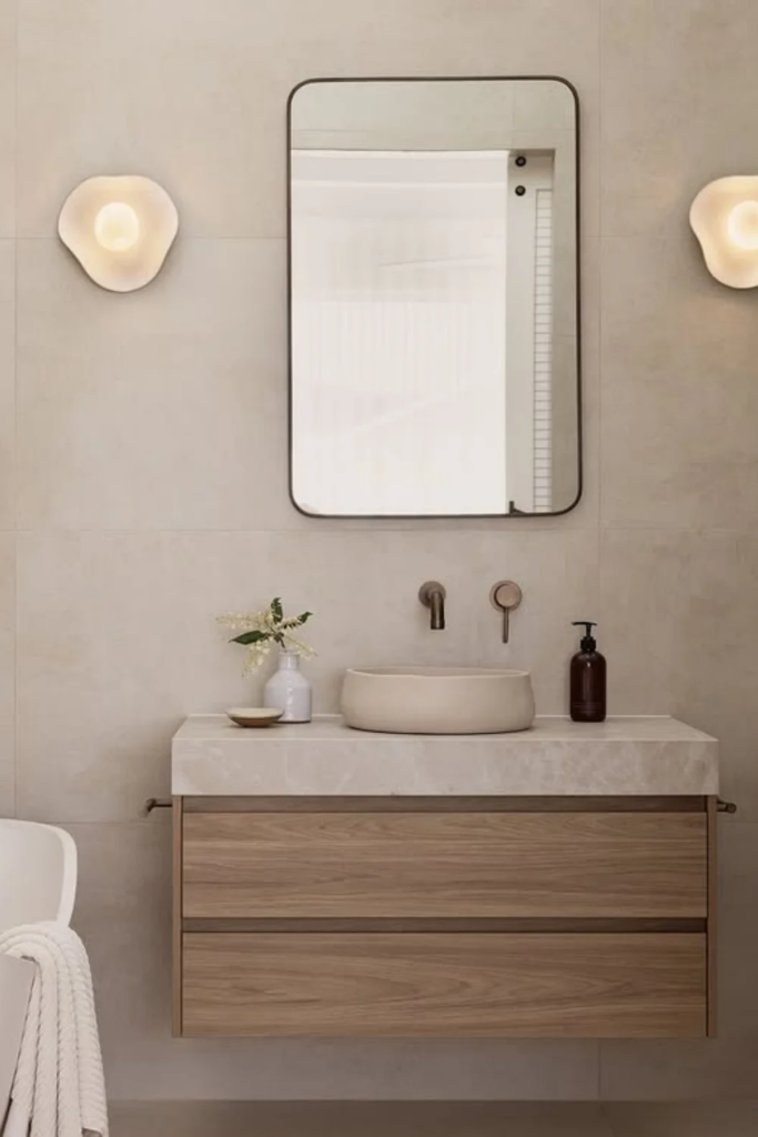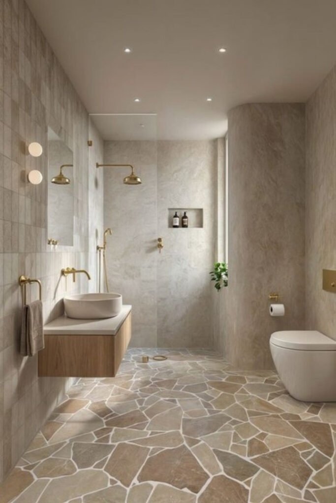 Soft stone finishes, whether natural or engineered, bring a sense of quiet strength. They feel solid without being harsh. A soft stone sanctuary focuses on touch as much as appearance, which is why matte finishes are favored over polished ones.