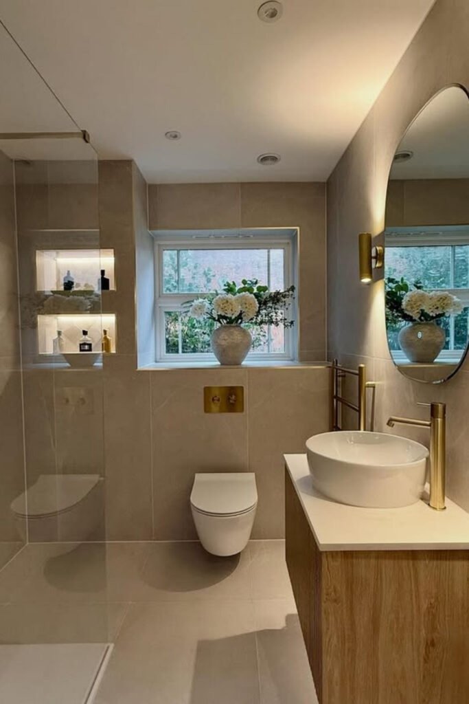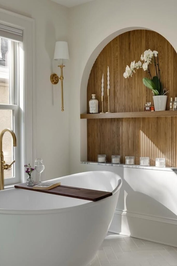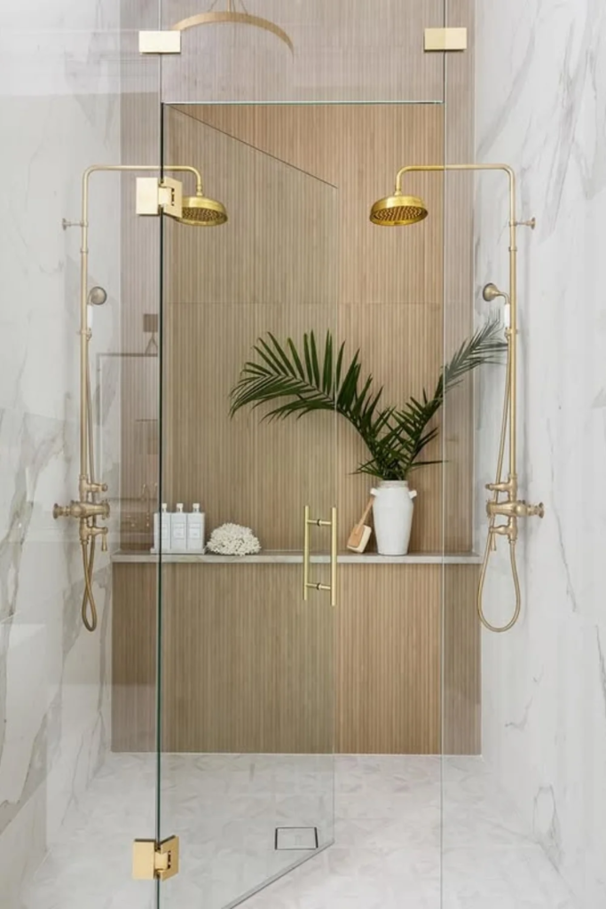 Brass fixtures add warmth when used with restraint. Balanced symmetry, such as matching faucets or aligned hardware, creates visual order. This order supports calm. In spa bathrooms, metals should feel supportive, not decorative.