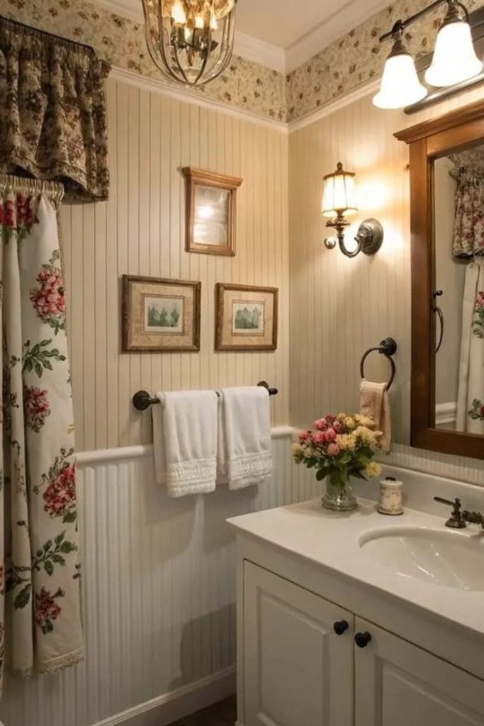 Cottage-style vintage bathrooms feel warm and personal. Soft colors, simple tile, and natural materials define this look.