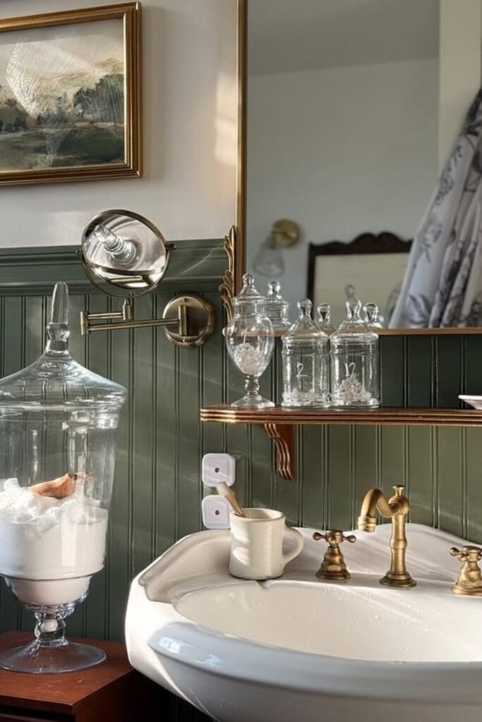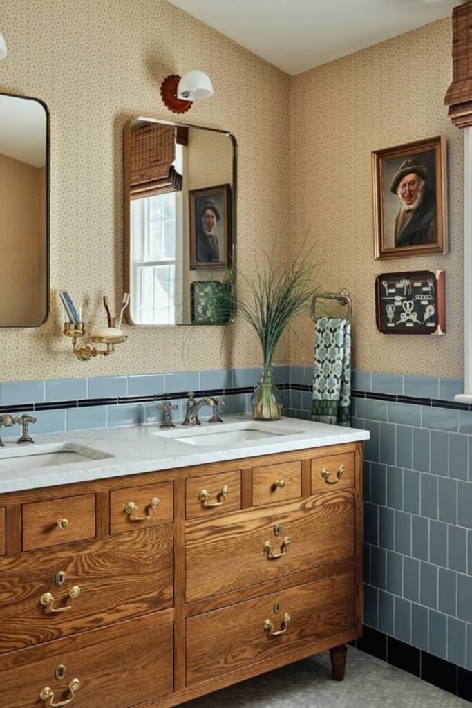 This idea is perfect for people who want vintage style without heavy details. Smooth surfaces, rounded mirrors, and simple lighting help the room feel open. The space still feels old in spirit, but it fits modern life. This balance keeps the bathroom from feeling dated while still honoring classic design.