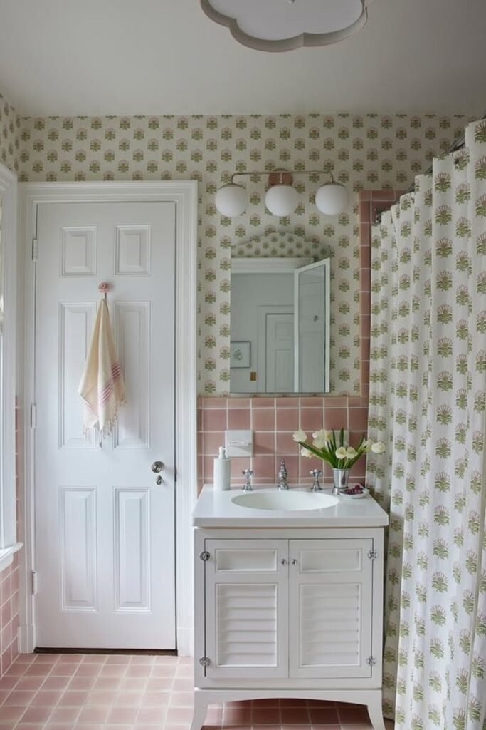 Pastel colors have always played a role in vintage bathrooms, and they are returning in a calmer way. Soft blue, gentle green, and pale peach bring warmth without overpowering the space.