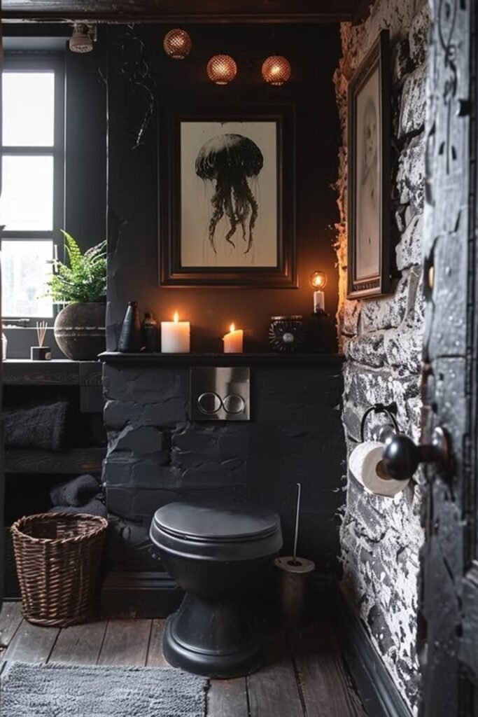 In 2026, dark powder rooms often mix classic sinks with simple mirrors. The contrast between old shapes and modern lighting keeps the room practical while still dramatic.