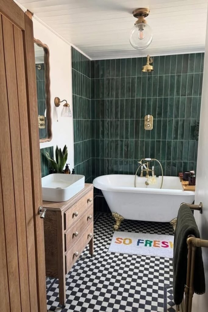 Emerald tile adds richness without feeling flashy. This color has a long history in vintage design.