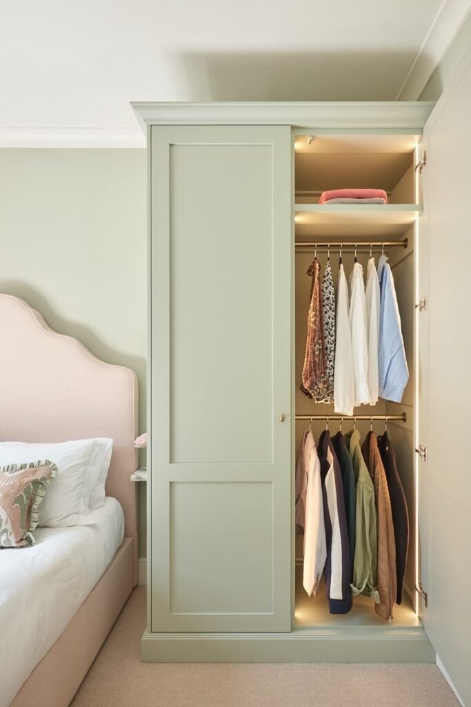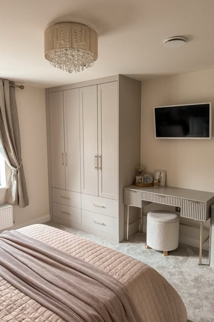 Using soft blush tones for a wardrobe creates a gentle and warm bedroom atmosphere. This color adds a subtle decorative touch while remaining versatile enough to match neutral walls and furniture. Blush wardrobes can act as a feature in the room without overwhelming the space.