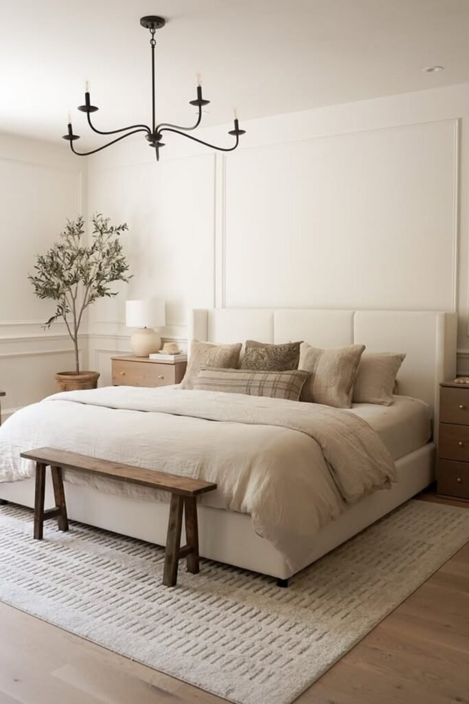 Grounded warmth comes from combining natural materials with stable colors. A neutral bedroom feels more grounded when wood, fabric, and soft lighting work together. This creates a sense of calm that supports better rest and relaxation.