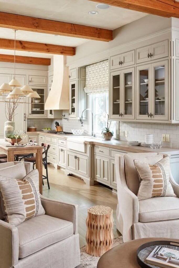 Below are layout ideas showing how warm neutrals shape a kitchen.